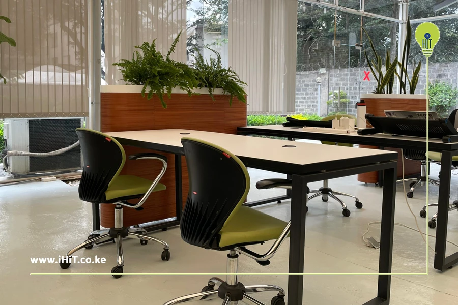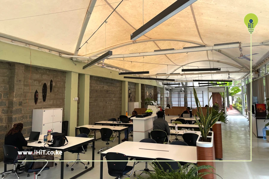 iHiT, located in a prime area within Kilimani offers an experience in a calm work environment and the flexible co- working spaces enable you to focus and get your work done. iHiT’s coworking space aims to create an environment that encourages productivity and comes with high-speed internet, access to tea and coffee station as well as comfortable workstations both indoors and outdoors as well as a restaurant to have your meals and unwind after hours. iHiT coworking spaces in Kilimani cater to individuals who prefer access to temporary spaces like daily work stations to having monthly work spaces for rent.